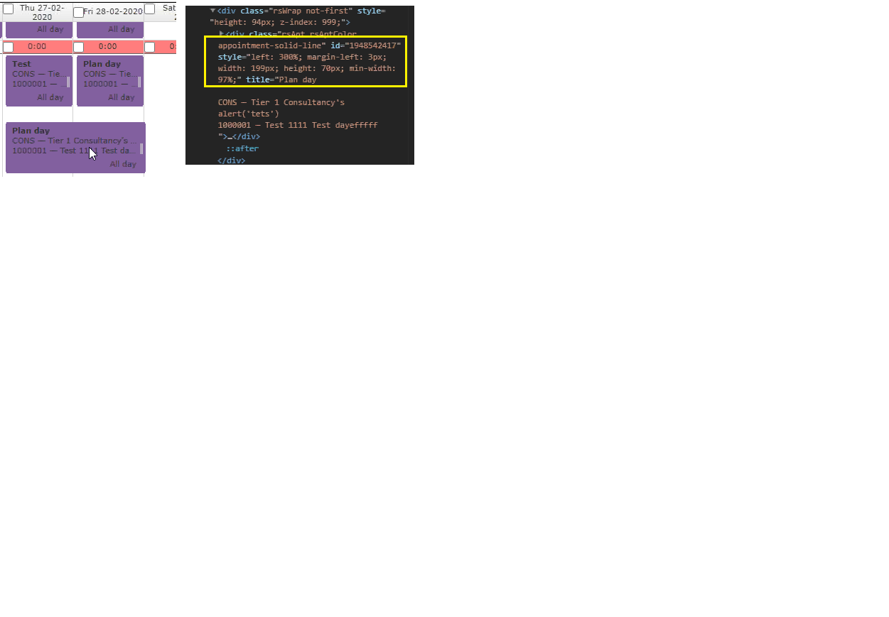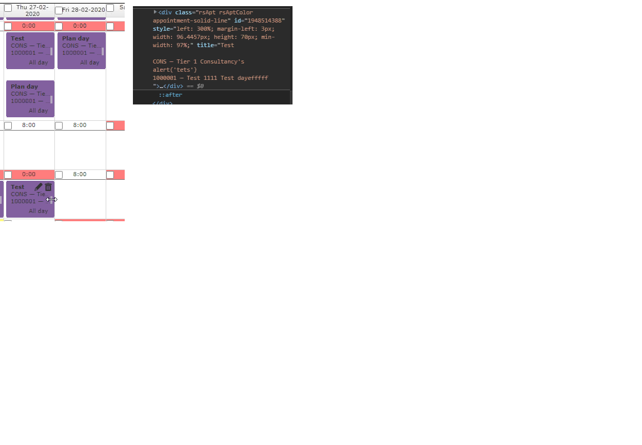 I found that when I extend the appointment, it didn;t change the width in the div class = rsApt rsAptColor appointment-solid-line