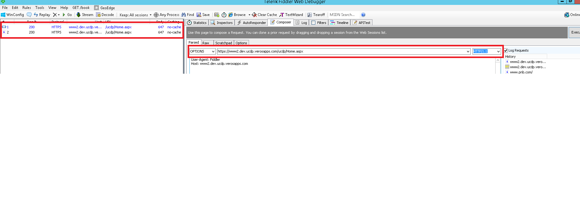 we tried using “compose” tab in Fiddler for testing OPTIONS method.