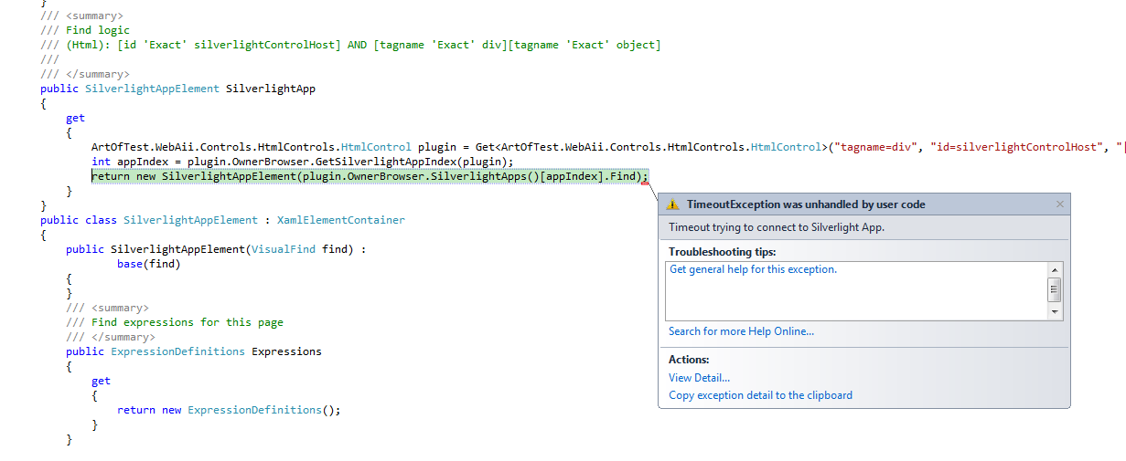 It Launches the Browser and Navigate to our Silverlight Application, but it Fails, when I debug this I am getting Timeout Exceptions...