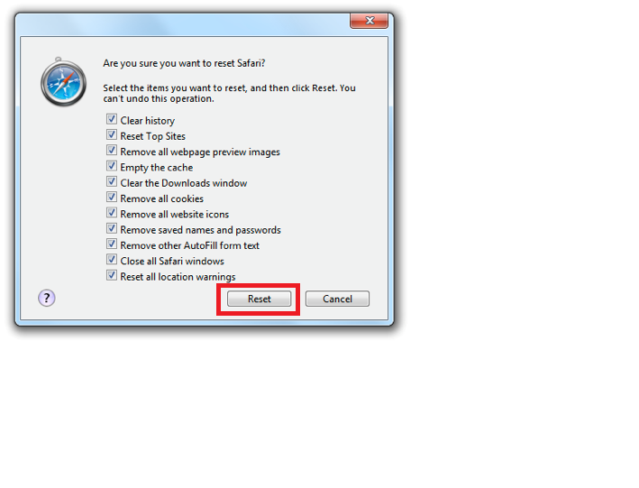 3. Click Reset button.
