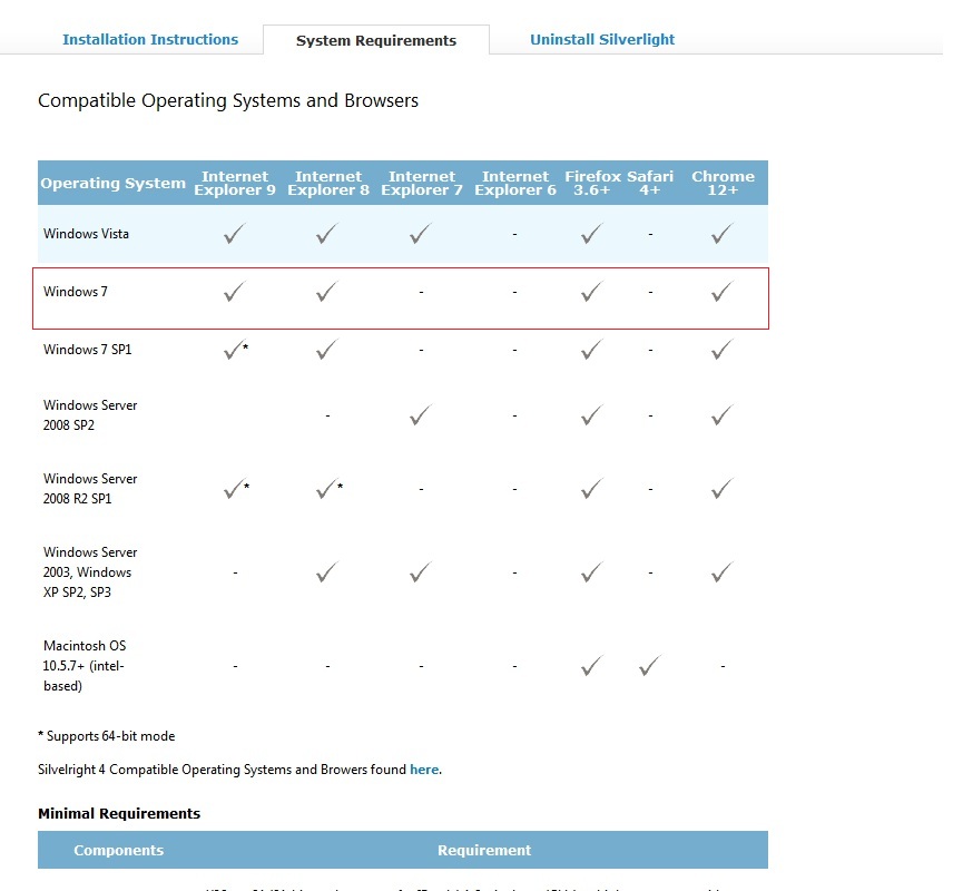 Please see the Snapshot of System Requirements of Silverlight.