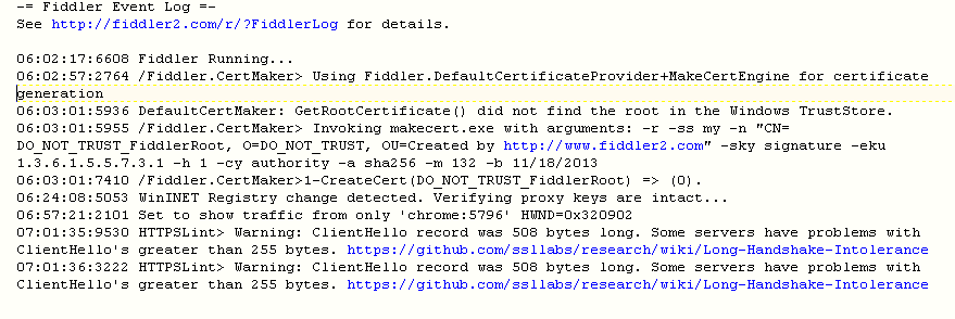 19:48:09:4958 /Fiddler.CertMaker>1-CreateCert(DO_NOT_TRUST_FiddlerRoot) => (0).Fiddler free web debugging proxywww.fiddler2.com