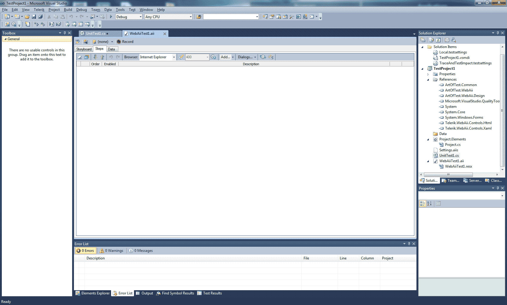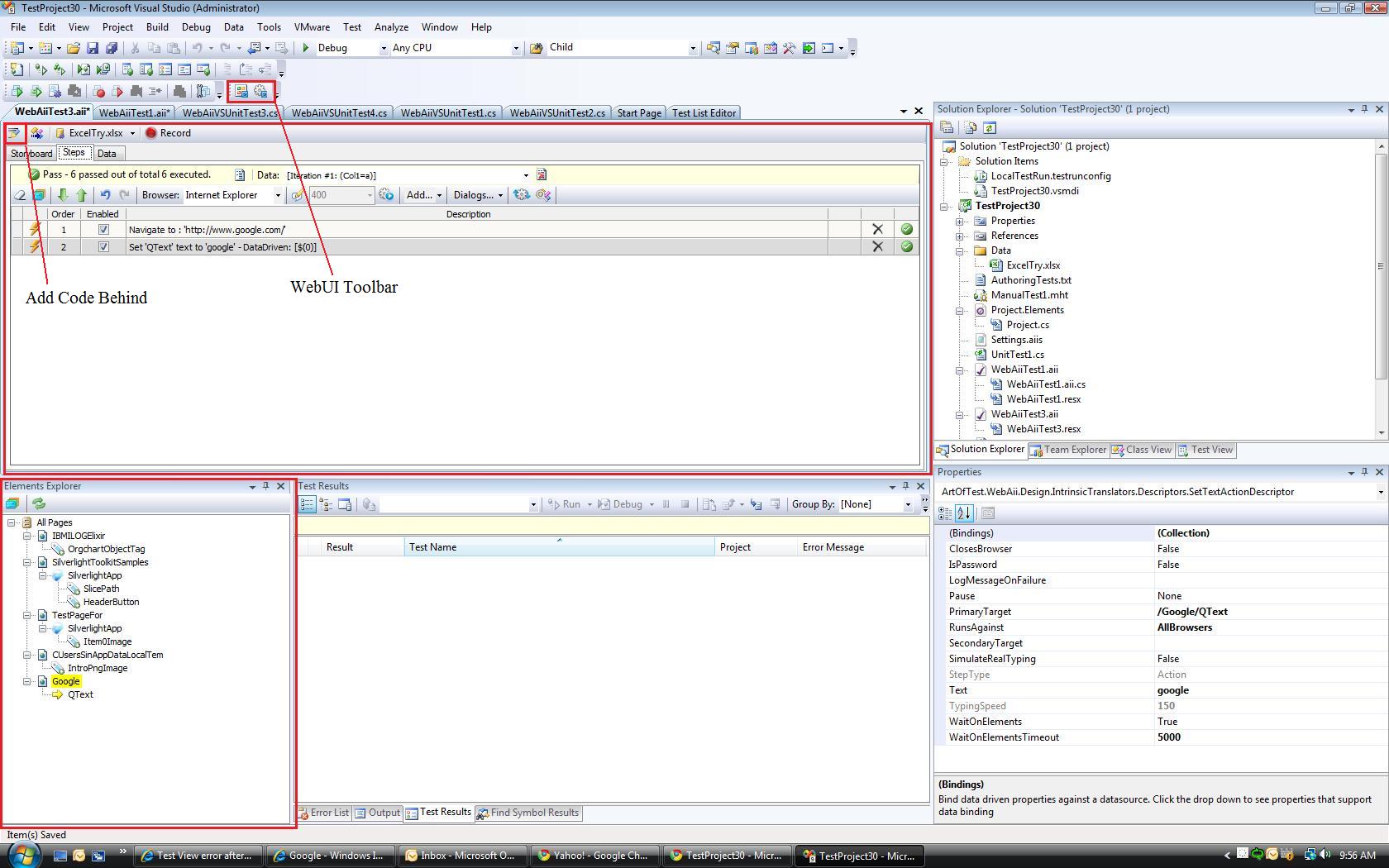 So does opening the WebAii Test look like the attached screenshot with the associated WebUI Windows? Or does the WebAii Test open showing XML code?