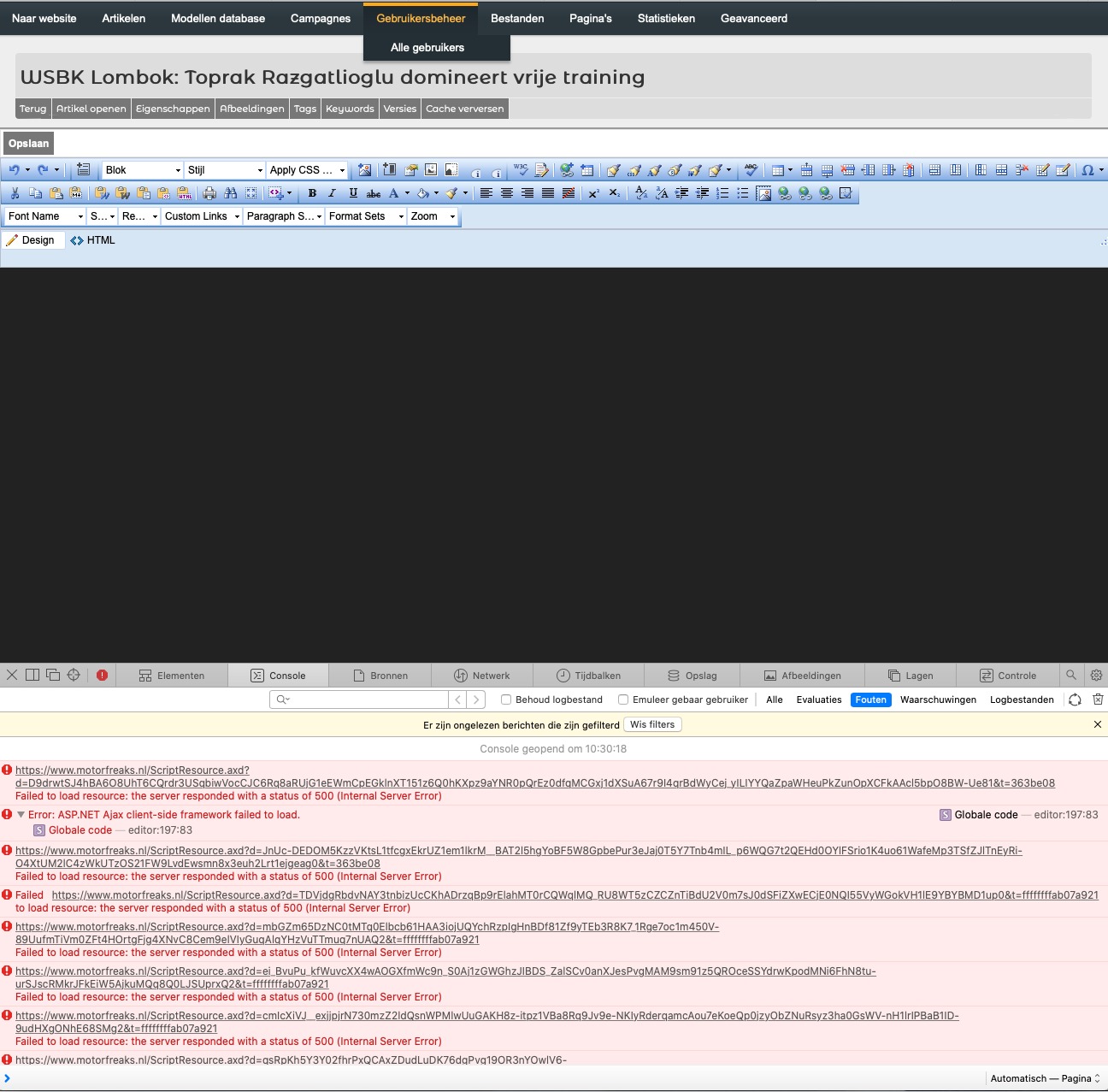 I have a website that uses Telerik as editor. It's a custom build website. A couple of weeks ago I noticed the editor didn't work anymore on my Mac (iOS Catalina 15.10.7), the content field doesn't load and I get a shitload of Failed to load resourse errors in the developerwindow. Included is a printscreen of the editor. At first I thought it was because of the latest version of Java, I installed the day before, because the editor still worked on my 10-year old Macbook which hadn't been updated.