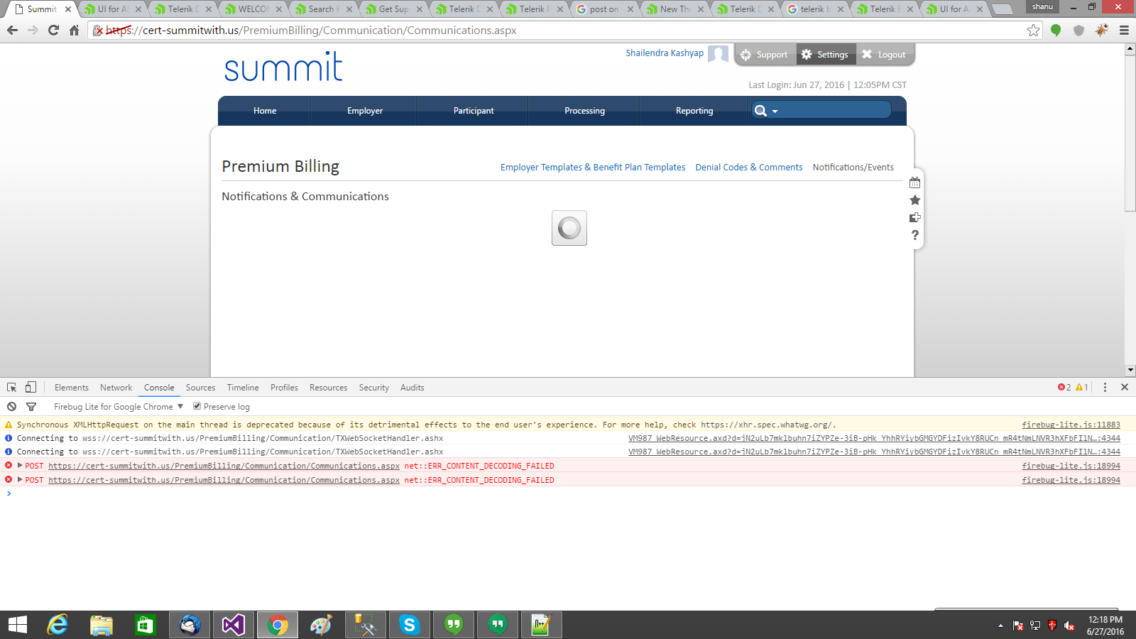I am facing infinite loader spinning issue in Summit my application on testing environment. I have tried replicating the same on local and