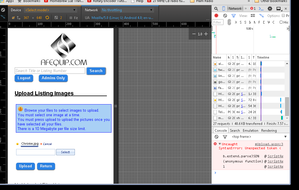 BUT I fired up Chorme developer tools and looked at the console when uploading that first file. I get the same results as the mobile clients do, the first file fails. But iknow I see an error message!!! Maybe you can tell me what it means!