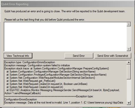 So what do we do about this issue? If you are in contact with the specific user with the problem, perhaps assist them in deleting the user.config file and see if that gets them going again. I'm guessing that this will fix the issue. The article I linked to above could perhaps assist in creating a general start-up check that detects this error and recovers so it (hopefully) won't happen somewhere in the middle of the application.