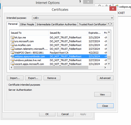 If one of our agents removes/deletes the webpos.epayworldwide fiddler certificate. Would that be harmful to your software in any way?
