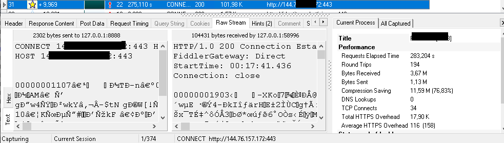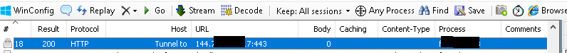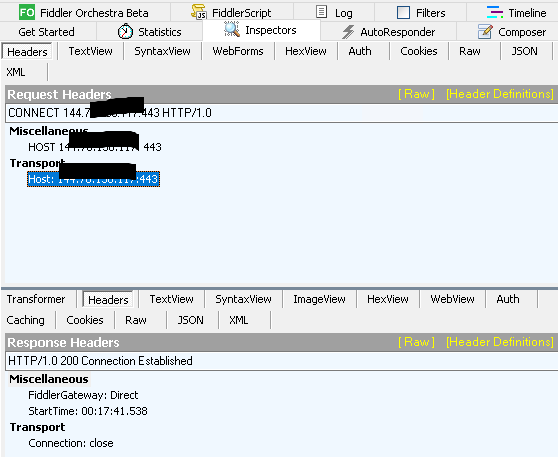 Request Headers: `CONNECT 144.***:443 HTTP/1.0`