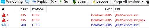 I'm trying to debug an application that uses WCF web services, and so want to monitor localhost:50000 for traffic. It seems that by default, Fiddler ignores localhost (although it captures all of the vshub requests that Visual Studio makes for diagnostics, so I'm not sure why it ignores my WCF services).