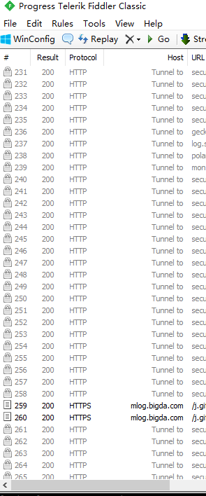 The CONNECT Tunnels in Fiddler Classic indicate that Fiddler is capturing traffic from the targeted application/endpoints, but the captured traffic is only HTTP and not HTTPS. That usually can suggest that you have a problem with the Fiddler certificate authority file. For example, the FIddler CA is not installed (on the emulator), or it is installed, but you are trying to capture traffic from an Android application that does not respect user-installed CAs.