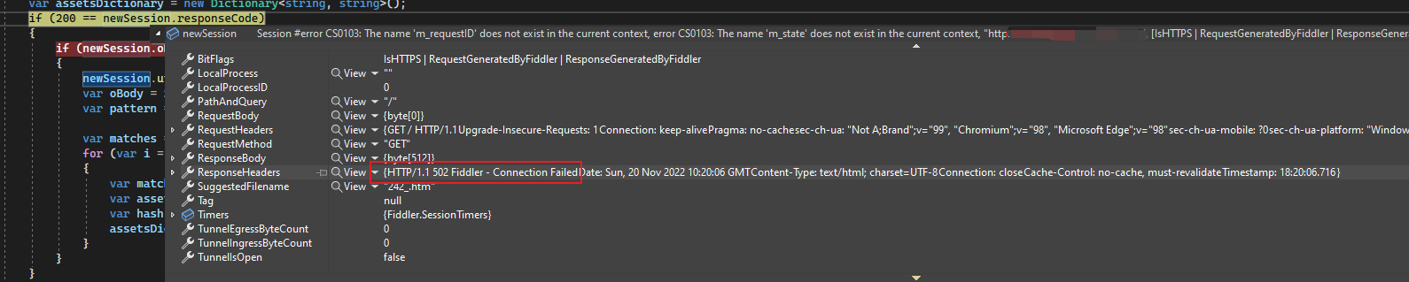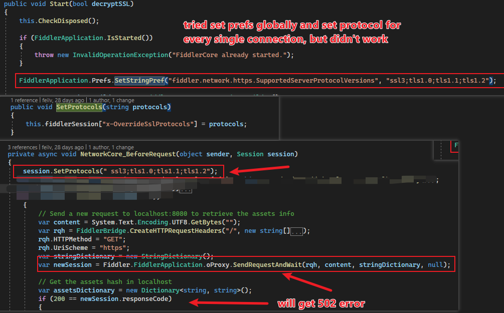 But when I try to use FiddlerCore to do the same thing, I got the 502 error.