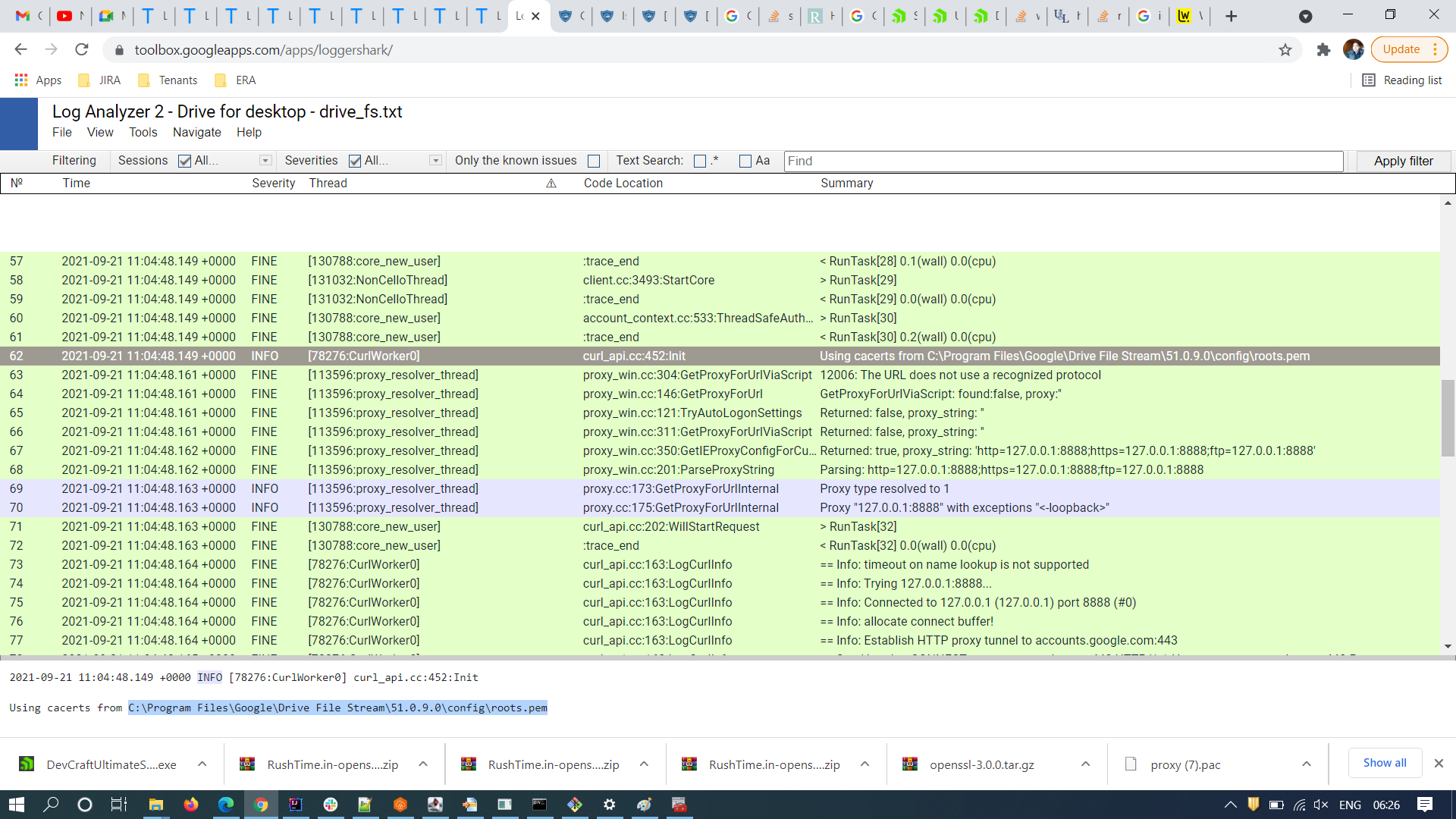 8.When we see all logs observed ssl verification is done with C:\Program Files\Google\Drive File Stream\51.0.9.0\config\roots.pem