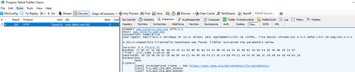 I am trying to decode https traffic with fiddler classic. I see error below in Log. I did reset all certificates, trust root cerficates with both MakeCert, CertEnroll engines. Please advice how to fix this issue. I used to decode https traffic with older version (before 2019) of fiddler which used to work without any error. Now i do not find the download link for older version of fiddler.