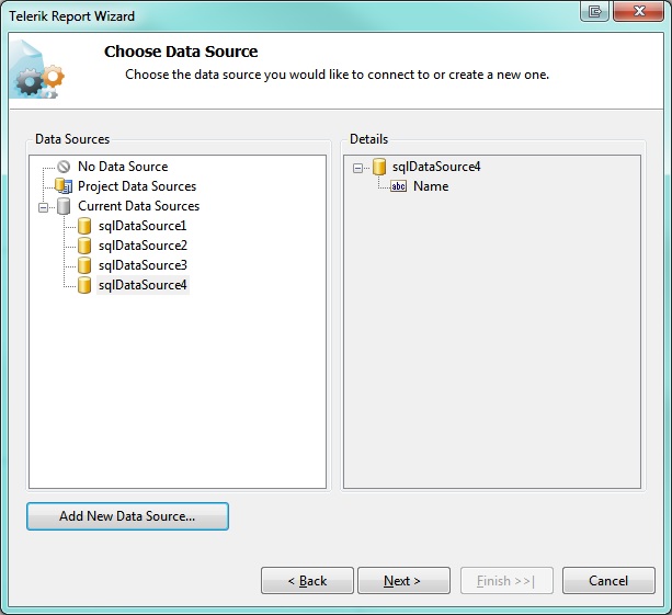 Unfortunately, once you're returned to the Choose Data Source page of the ReportWizard, only one of the twenty fields shows up: