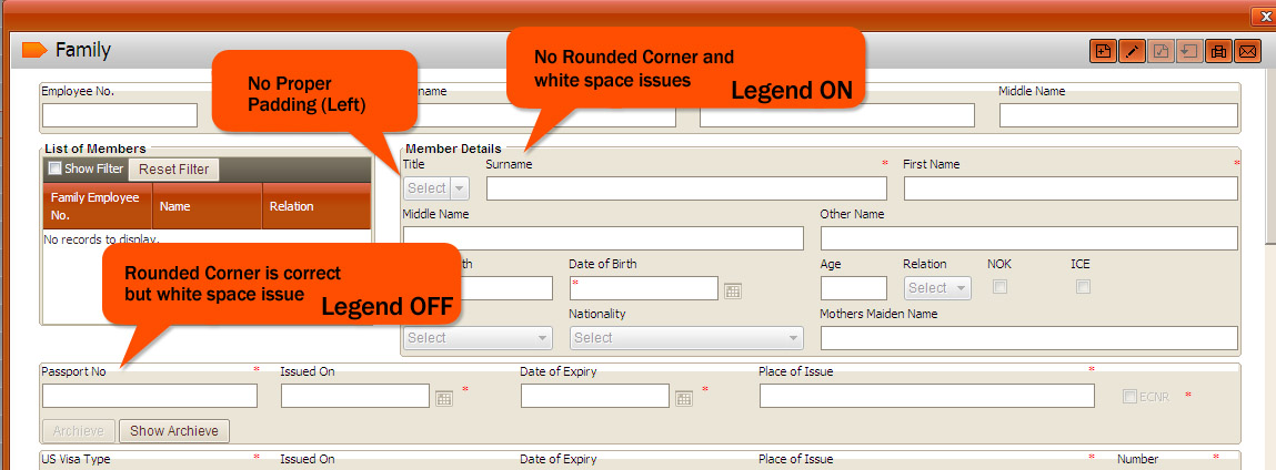 <style type="text/css"> /* IE8 CSS hack */ @media \0screen { .rfdRoundedContent fieldset {padding: 0 10px 10px 10px;} } /* IE6 and IE7 CSS hack */ .rfdRoundedContent fieldset {*padding: 0 10px 10px 10px;}</style>Regarding the white space issue in IE8, I could not reproduce it - you can watch a short video with the test here. Could you try to reproduce this issue with the VS sample I have attached in the archive and then tell us what changes you have done?