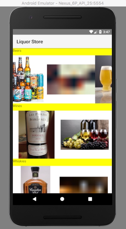 <Label row="4" text="Whiskies" height="30" style.backgroundColor="yellow" class="banner"/>