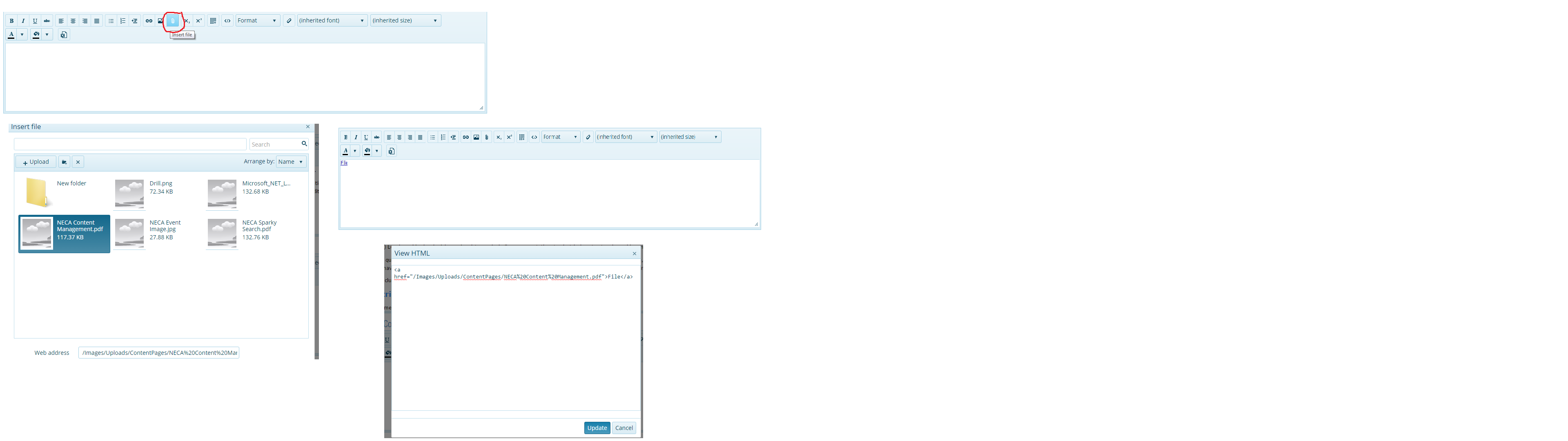 Below is an example of the current and desired outcome upon inserting a file using the FileBrowser.