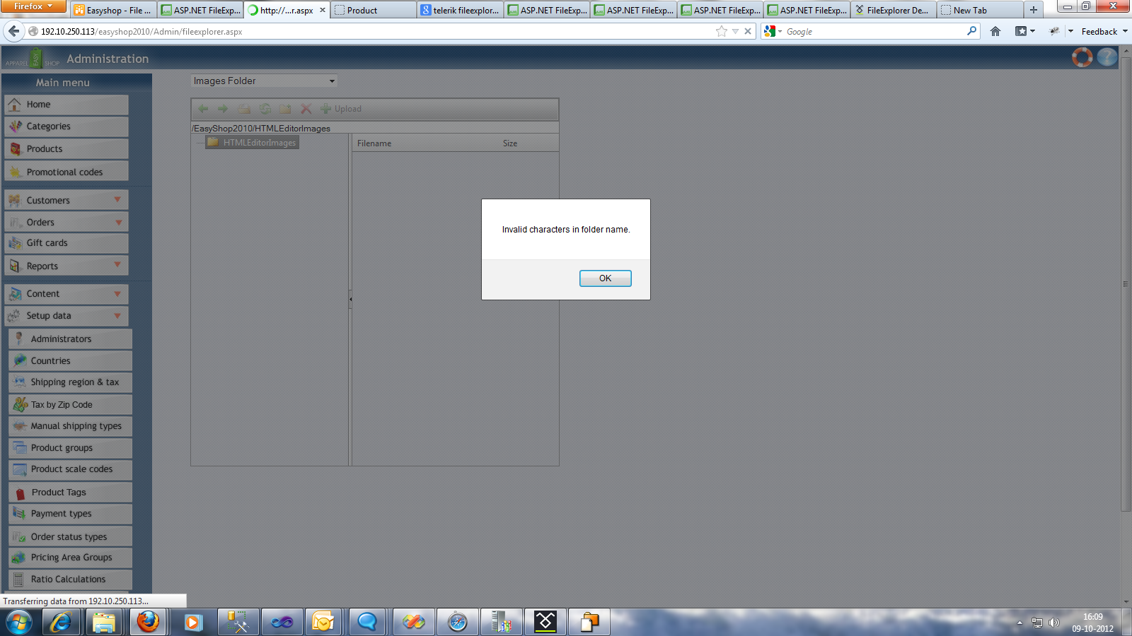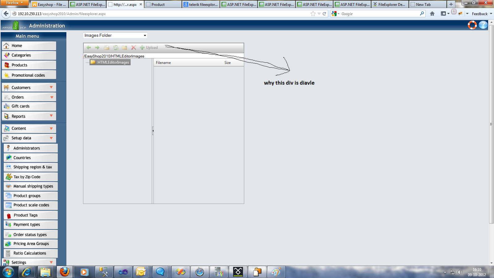 we have the telerik dll version 2012.1.411.40 i am implementing the file explorer in my application i but it didn't working properly as like of the demo site following are the problem i have faced