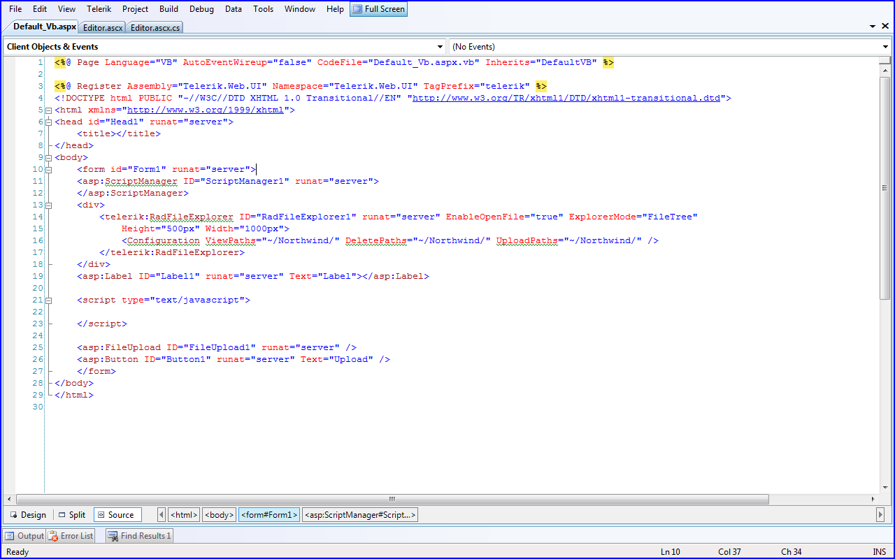 I've tried to attach a zipfile to this thread, but I can only upload images. I've made a screenshot of my Default_VB.aspx.
