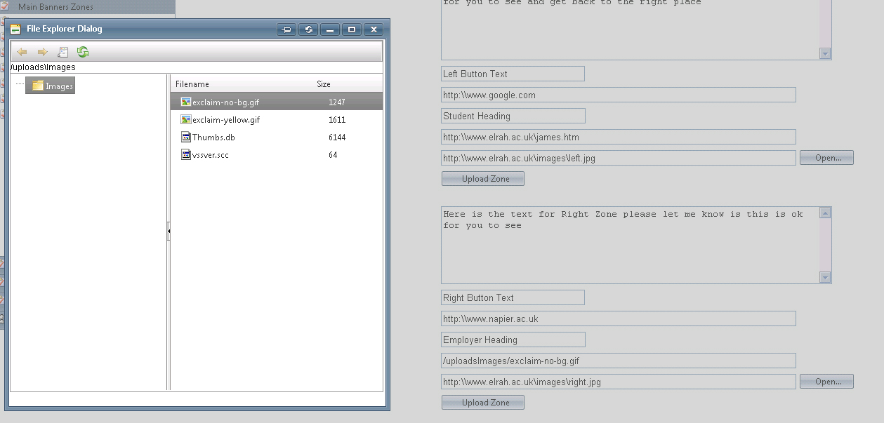 Hi, i am trying to use the file explorer on a page which has a master page of which the controls (text boxes) on the pages are genarated from a usercontrol, i'm trying to have two text boxes which both link to the file explorer using the file seletor dialog demo http://demos.telerik.com/aspnet-ajax/fileexplorer/examples/fileselectordialog/defaultcs.aspx, everything seems to work apart from when i click the files on file explorer the window shuts but my file paths are not transfered to the text boxes , below is the code that is genarated from one of the usercontrols on the page which look like its passing the corrent name of the control but i'm not sure if i am mising something? any help would be great