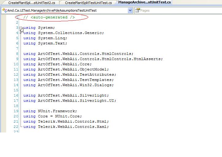Also, we implement the checking for FxCop and StyleCop for our codes. So when we try to convert our recorded steps into Nunit, the generated codes will hit the FxCop and StyleCop warnings. The workaround that we're currently using is to add