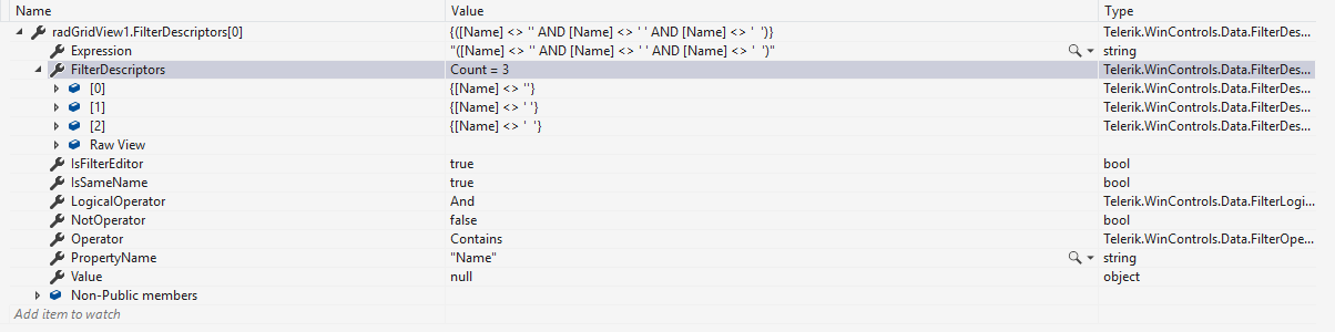 I am attempting to filter results in a RadGrid.
