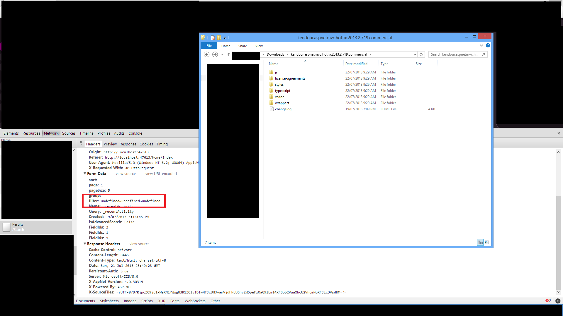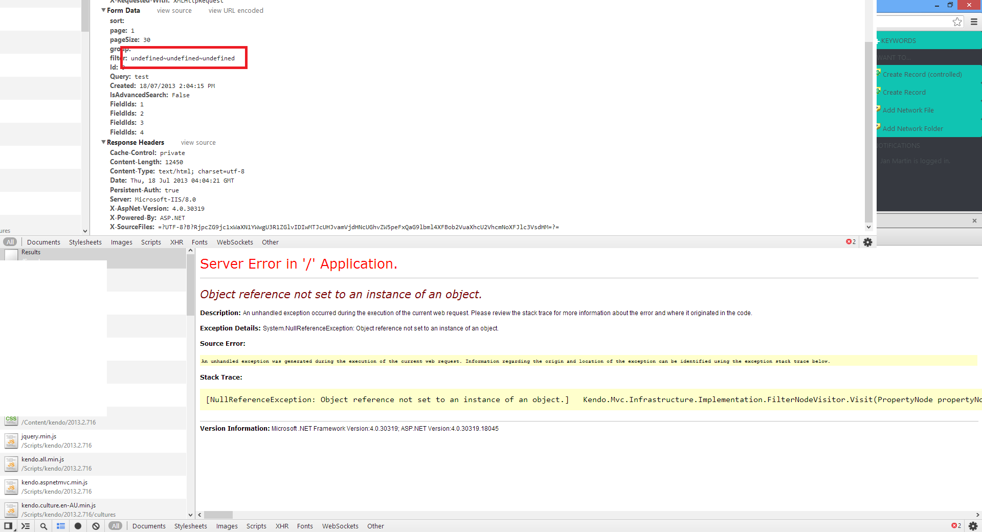 The grid itself doesn't even have filter enabled, why is it passing undefined at all, which is what Kendo is hanging up on I'm guessing....