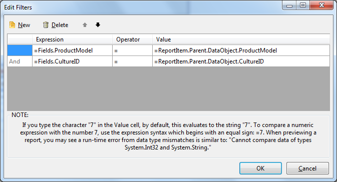 I have a report that is bound to a DataSet. That DataSet has 2 Tables, Table and Table1. In the detail section I display information from Table and have a List where I am showing data from Table1. I now want to be able to filter the data in the List, using a filter expression. The criteria I need to filter is this:
