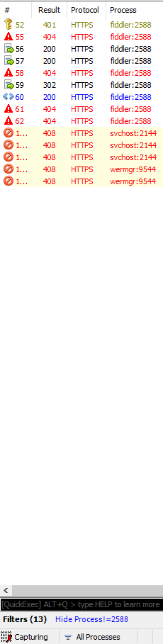 I have been using Fiddler for several years now and one thing has consistently bothered me. Whenever I add a filter, say, "Show only processid X", it will filter out everything else. So far so good. However, if something new comes in (usually visual-studio related) that wasn't on-screen prior to the filter it isn't filtered.