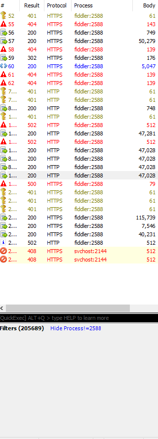I have included a screenshot showing that a filter is active, with a new instance of svchost showing up after the filter was applied. Is there some way that I can tell Fiddler to apply my filter to any future traffic in this session and not just previous traffic?