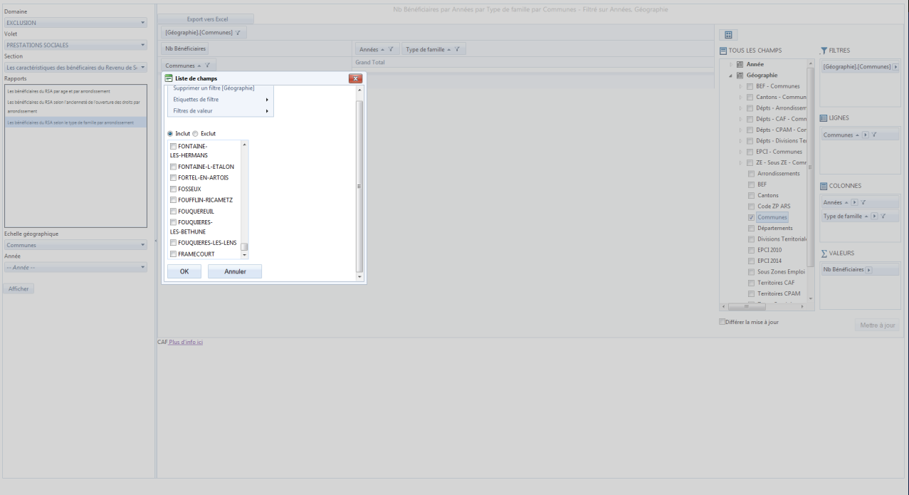 in my example, a rowField displays cities and when I want to filter values, the list of possible values in the filter window is limited from letter A to F, as you can see in the attached file.