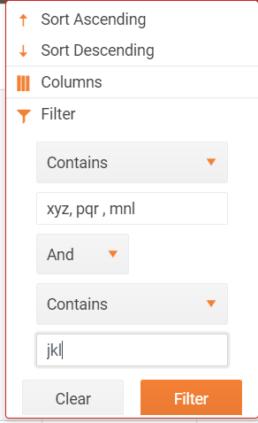 I want to search multiple text in filter menu. I have created multiple field object from string array. and first time filter is working fine.