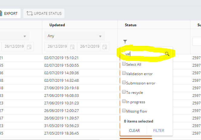 the grid the value is displayed as '27/11/2019 12:34:20' and I am giving the value '27/11/2019' in the text box to search with Filter option as 'Equal To'. No results are returned when I have selected this value from the grid itself.