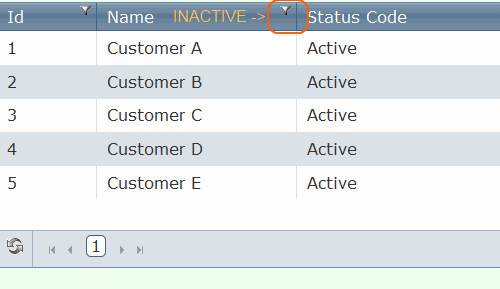 The data renders properly and sorting and paging work as expected. The filter icon will show up, but the link is not active: