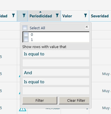 I have the following radgridview. In the alert column the filter takes out a 0 or a 1, which is the data that is collected from the database.