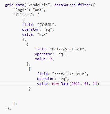 { field: "SYMBOL", operator: "eq", value: "NLP"}, { field: "EFFECTIVE_DATE", operator: "eq", value:"\/Date(1065657600000)\/" }