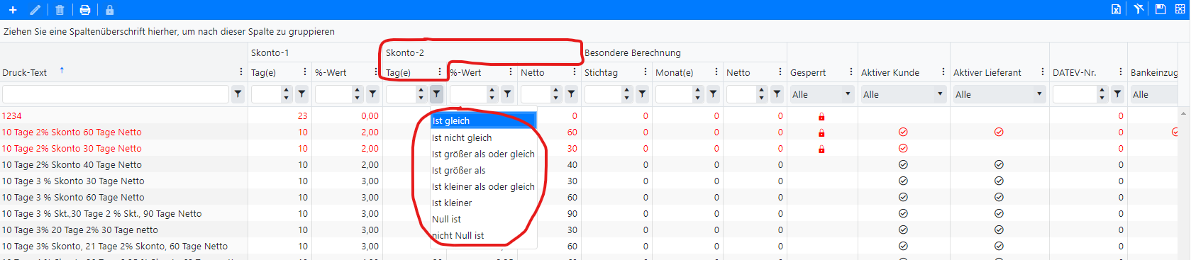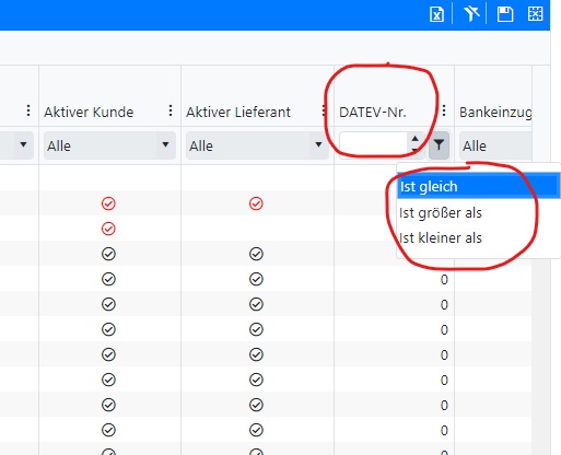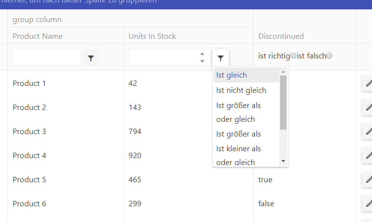 we use some grids where we have defined the filters that appear on the columns with: