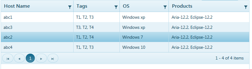 public ActionResult GetComputers([DataSourceRequest]DataSourceRequest request){ List<string> tags1 = new List<string>(); tags1.Add("T1"); tags1.Add("T2"); tags1.Add("T3"); List<string> tags2 = new List<string>(); tags2.Add("T3"); tags2.Add("T2"); tags2.Add("T4"); List<string> tags3 = new List<string>(); tags3.Add("T1"); tags3.Add("T2"); tags3.Add("T4"); List<VarianProduct> prodcut1 = new List<VarianProduct>() { new VarianProduct(){Name = "Aria", Version = "12.2"}, new VarianProduct(){Name = "Eclipse", Version = "12.2"} }; List<VarianProduct> prodcut2 = new List<VarianProduct>() { new VarianProduct(){Name = "Aria", Version = "12.2"}, new VarianProduct(){Name = "Eclipse", Version = "12.2"} }; List<VarianProduct> prodcut3 = new List<VarianProduct>() { new VarianProduct(){Name = "Aria", Version = "12.2"}, new VarianProduct(){Name = "Eclipse", Version = "12.2"} }; List<VarianProduct> prodcut4 = new List<VarianProduct>() { new VarianProduct(){Name = "Aria", Version = "12.2"}, new VarianProduct(){Name = "Eclipse", Version = "12.2"} }; List<ComputerViewModel> list = new List<ComputerViewModel>() { new ComputerViewModel{Id = 1, HostName = "abc1", OS = "Windows xp", Tags = tags1, Products = prodcut1 }, new ComputerViewModel{Id = 2, HostName = "abc3", OS = "Windows xp", Tags = tags2, Products = prodcut2}, new ComputerViewModel{Id = 3, HostName = "abc2", OS = "Windows 7", Tags = tags3, Products = prodcut3}, new ComputerViewModel{Id = 4, HostName = "abc4", OS = "Windows 10", Tags = tags1, Products = prodcut4} } return Json(list.ToDataSourceResult(request), JsonRequestBehavior.AllowGet);}