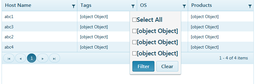 When i select a checkbox and click on filter, filter applies and filters the grid datasource matching with checkbox value which exists in Tags column.