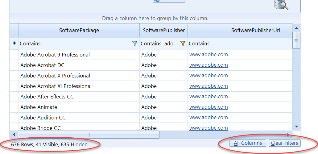 Are Any Filters defined Are there Any hidden columns in the grid (Show all Columns / Column Chooser visual hints)