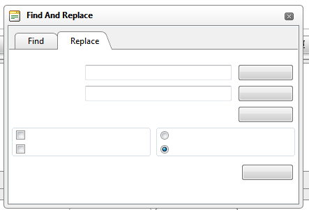 but I am having problem with "Find and Replace" icon, when I click this icon popup diaglo appare as attached image (No text).