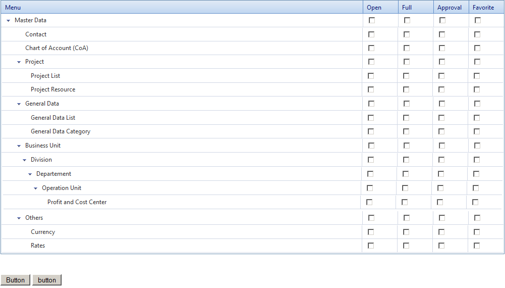 Public Sub HideExpandColumnRecursive(ByVal tableView As GridTableView) Dim nestedViewItems As GridItem() = tableView.GetItems(GridItemType.NestedView) Dim itemid As String, itemidnya As String For Each item As GridItem In tableView.Items If TypeOf item Is GridDataItem Then Dim dataItem As GridDataItem = CType(item, GridDataItem) Dim mnid As String = dataItem.OwnerTableView.DataKeyValues(dataItem.ItemIndex)("mnid") Dim mnname As String = dataItem.OwnerTableView.DataKeyValues(dataItem.ItemIndex)("mnnameen") itemid = dataItem.ClientID Dim data() As String = Split(itemid, "__") Dim checkBoxOpen As CheckBox = TryCast(dataItem("CBoxOpenTemplateColumn").FindControl("CBoxOpen"), CheckBox) AddEventCbox(checkBoxOpen, "_" & data(1) & "__" & mnid & "__Open", "CheckedChanged('" & data(1) & "','Open',this)") Dim checkBoxFull As CheckBox = TryCast(dataItem("CBoxFullTemplateColumn").FindControl("CBoxFull"), CheckBox) AddEventCbox(checkBoxFull, "_" & data(1) & "__" & mnid & "__Full", "CheckedChanged('" & data(1) & "','Full',this)") Dim checkBoxApproval As CheckBox = TryCast(dataItem("CBoxApprovalTemplateColumn").FindControl("CBoxApproval"), CheckBox) AddEventCbox(checkBoxApproval, "_" & data(1) & "__" & mnid & "__Approval", "CheckedChanged('" & data(1) & "','Approval',this)") Dim checkBoxFavorite As CheckBox = TryCast(dataItem("CBoxFavoriteTemplateColumn").FindControl("CBoxFavorite"), CheckBox) AddEventCbox(checkBoxFavorite, "_" & data(1) & "__" & mnid & "__Favorite", "CheckedChanged('" & data(1) & "','Favorite',this)") End If Next For Each nestedViewItem As GridNestedViewItem In nestedViewItems For Each nestedView As GridTableView In nestedViewItem.NestedTableViews nestedView.Style("border") = "0" Dim MyExpandCollapseButton As Button = DirectCast(nestedView.ParentItem.FindControl("MyExpandCollapseButton"), Button) If nestedView.Items.Count = 0 Then If Not MyExpandCollapseButton Is Nothing Then MyExpandCollapseButton.Style("visibility") = "hidden" End If nestedViewItem.Visible = False Else If Not MyExpandCollapseButton Is Nothing Then MyExpandCollapseButton.Style.Remove("visibility") End If End If If nestedView.HasDetailTables Then HideExpandColumnRecursive(nestedView) End If Next Next End SubThanks in advance for your help.
