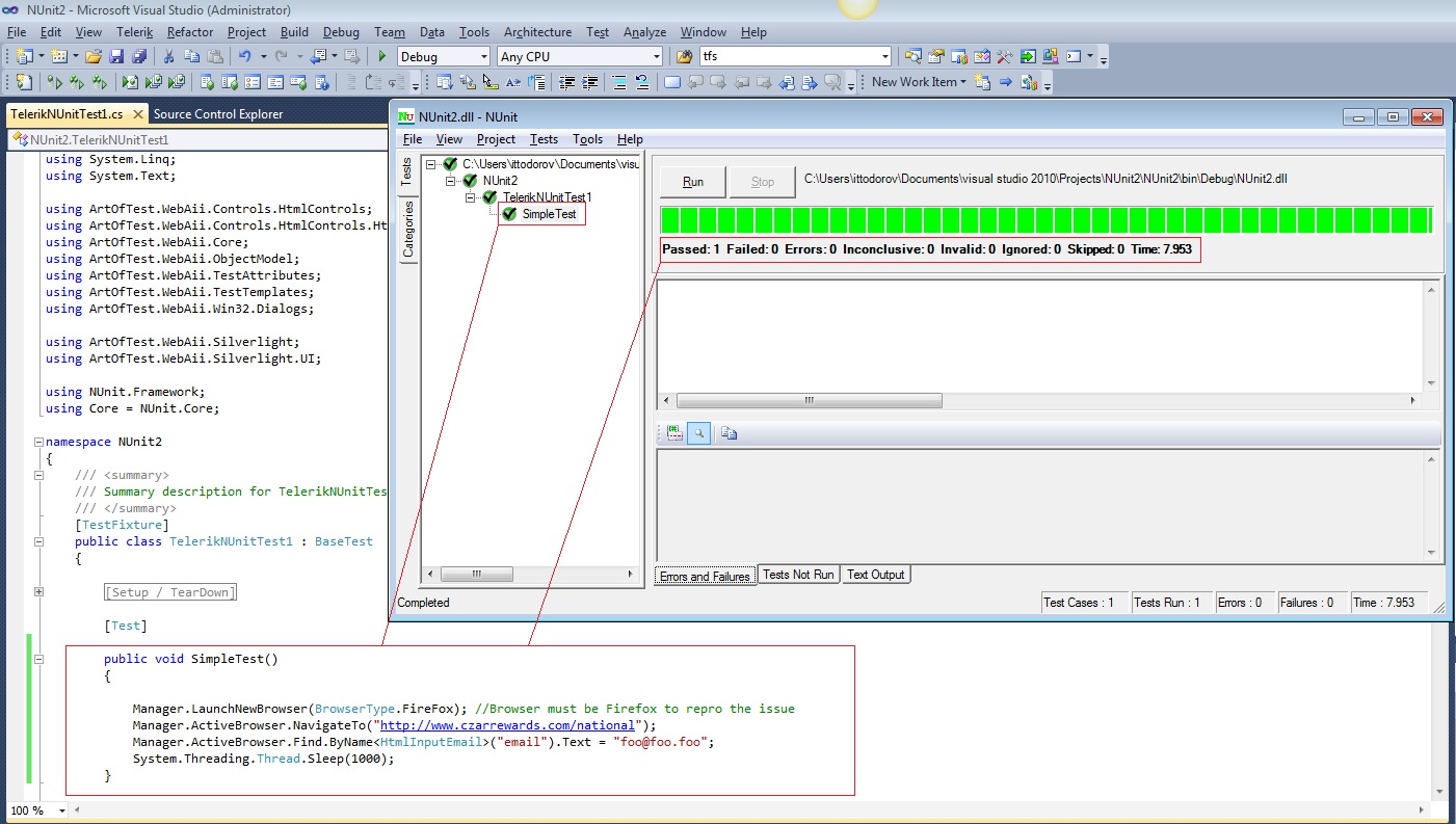 1. Run a test from Nunit that Opens a website in Firefox 8