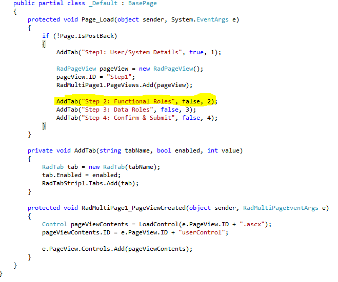 TabTestCS.png shows the code behind for the default page (not the Site.Master) showing the creation of tabs and pageviews.
