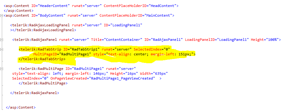 I am getting an object reference error when using FindControl("RadTabStrip1").