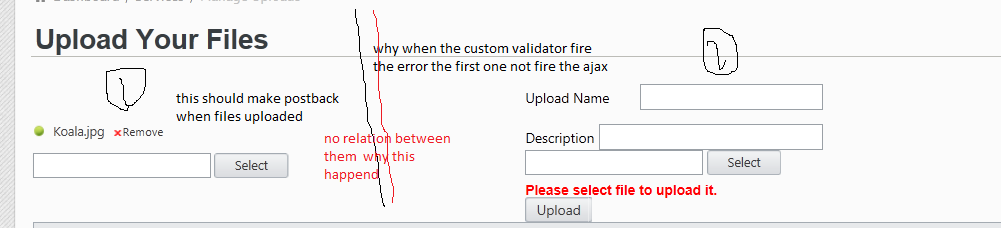 The problem is when the custom validator is fire the error msg the first one doesn’t fire the ajax but when I fire it twice it will make postback .