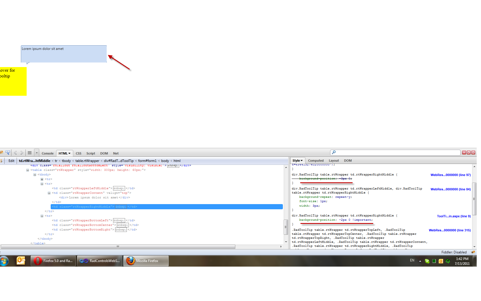 I have a problem with the RadToolTip design (CSS) on the Firefox browser.