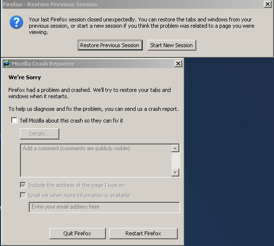 In addition, do you guys know of a way to handle FF crashes ? When FF goes down I'm getting the attached message.