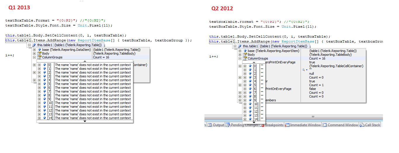 The report was working fine until I upgraded to Q1 2013. After the update the report renders with the value of the first column as the value for all other columns all though the column headings are rendered correctly. Please find attached screenshots for both the versions. The code given in the link which is windows forms project is working fine after update. I am doing this in asp.net and the only thing I did was update it after which the problem occurs.